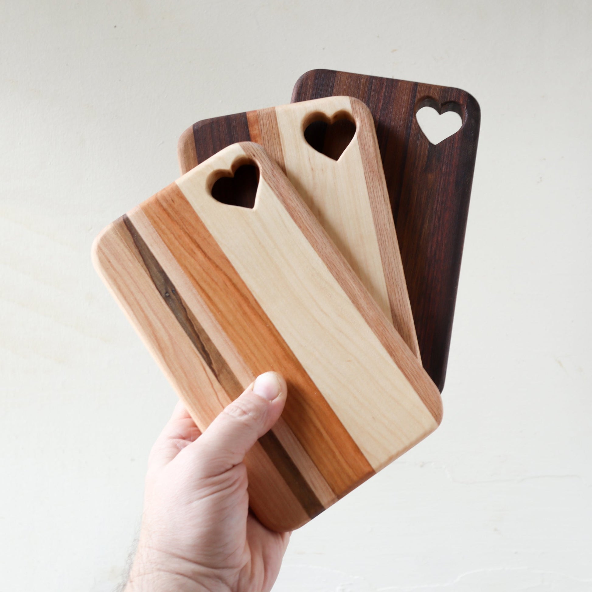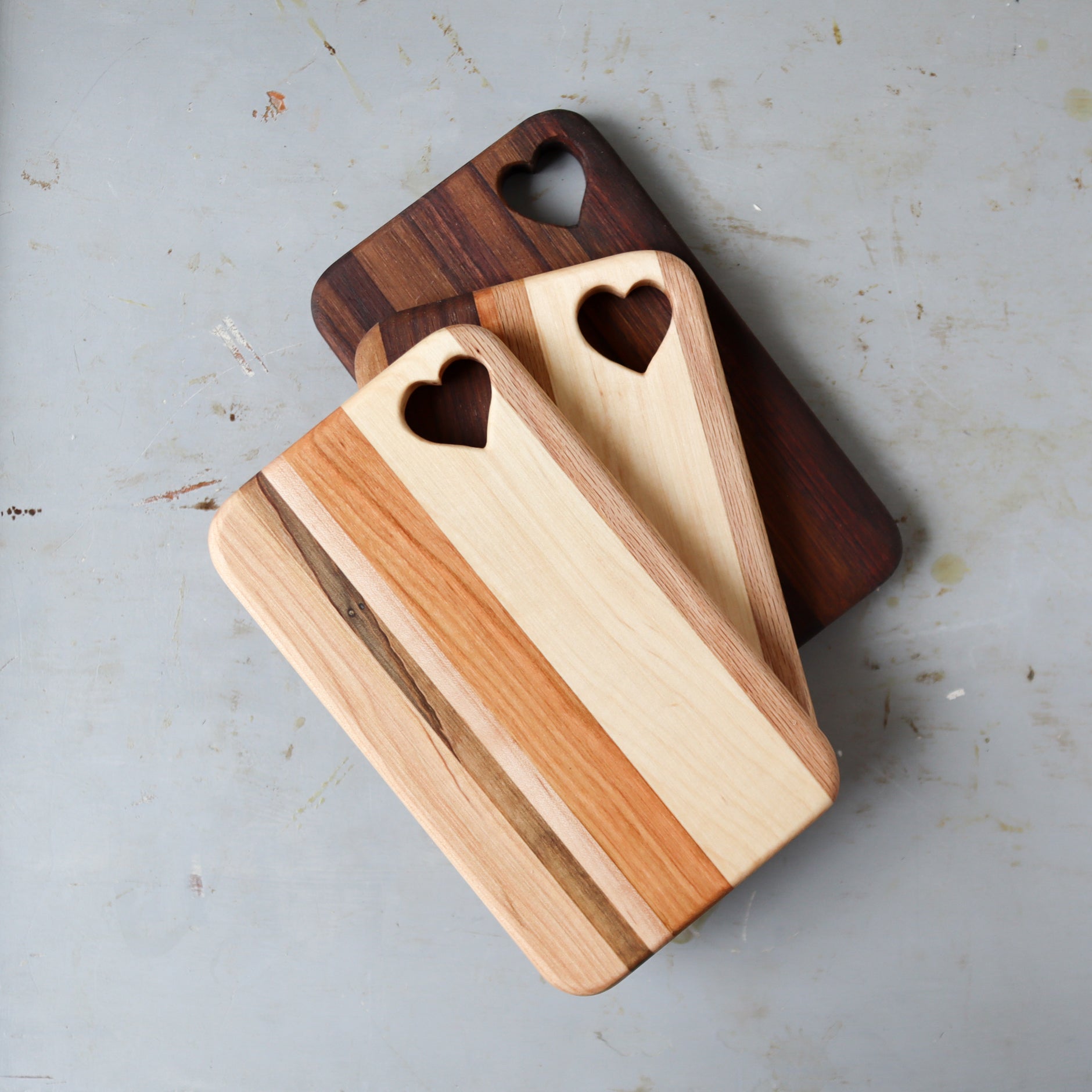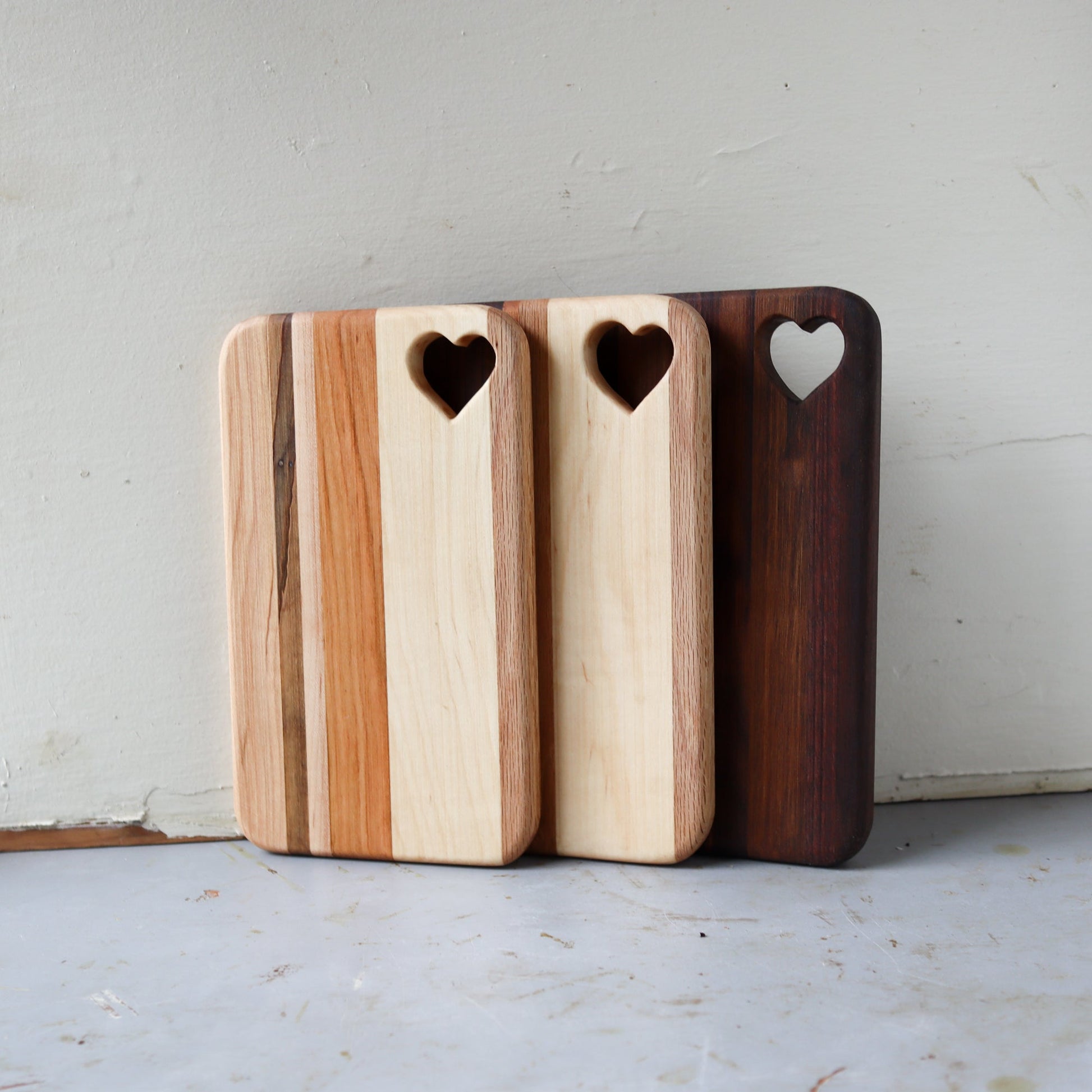Bring a little love into your kitchen with these gorgeous heart-embellished cheese boards! These adorable serving boards are handcrafted with strips of hardwood for lasting durability and ageless beauty.